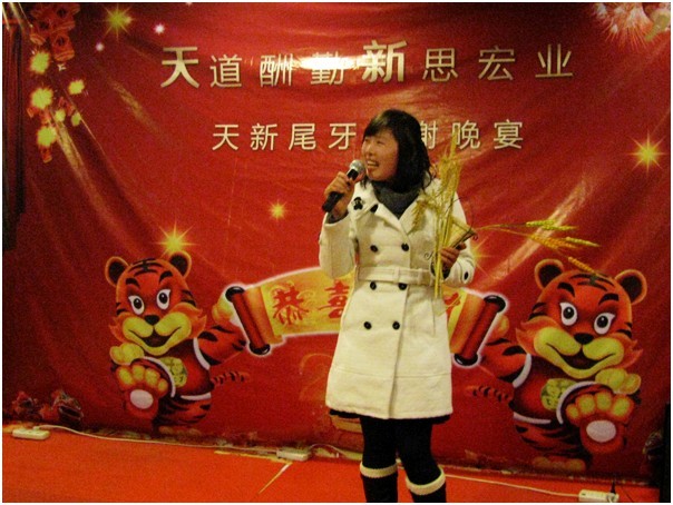 晚上7点,答谢晚宴正式开始,薛总对大家过去一年的辛苦努力表示由衷的感激,是天新人用智慧和勤劳浇开了公司强盛之花!是天新人用青春和汗水谱写了一曲曲动人心魄的创业者之歌。