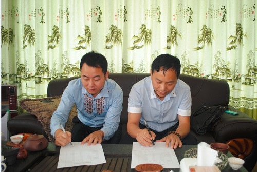 下图为天新总裁薛诚先生和久益总经理张建战略合影。